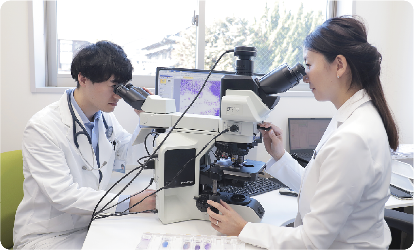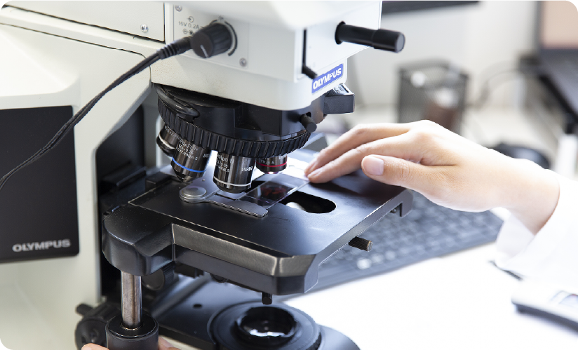 病理科は、動物から採取された組織や細胞を病理医が顕微鏡下で診断を行っています。当院は、細胞診診断と病理組織診断の2つの米国専門医資格を有する病理診断医が常勤しています。院内において剖検を行うこともあり、研究への貢献も行っています。